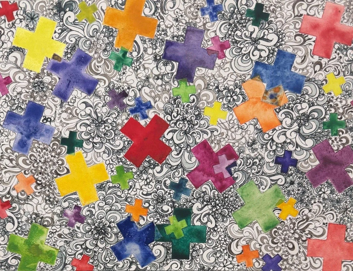 CHAOS = Order + Entropy. In Allyson's paintings, chaos symbolizes the material world where bedrock reality, ordered systems and cells, particles and waves, fall apart in an exquisite spontaneous flow of planned randomness.